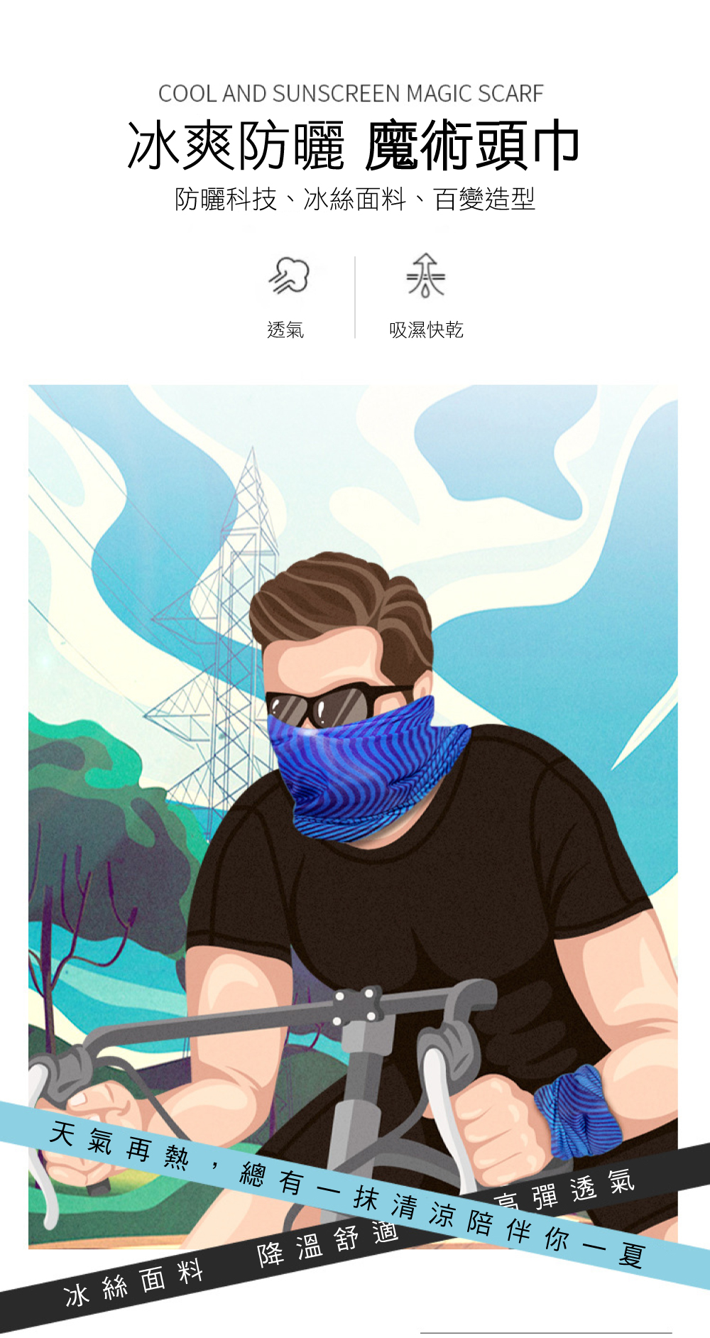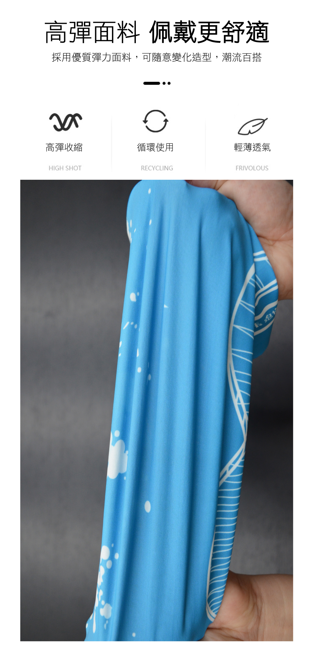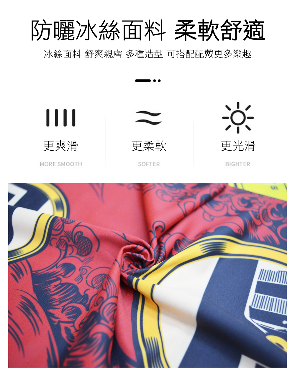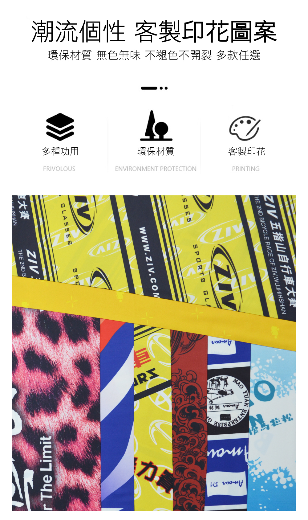 全彩熱昇華印刷,無毒墨水、色彩飽滿,獨立包裝!獨家附贈頭巾使用說明!