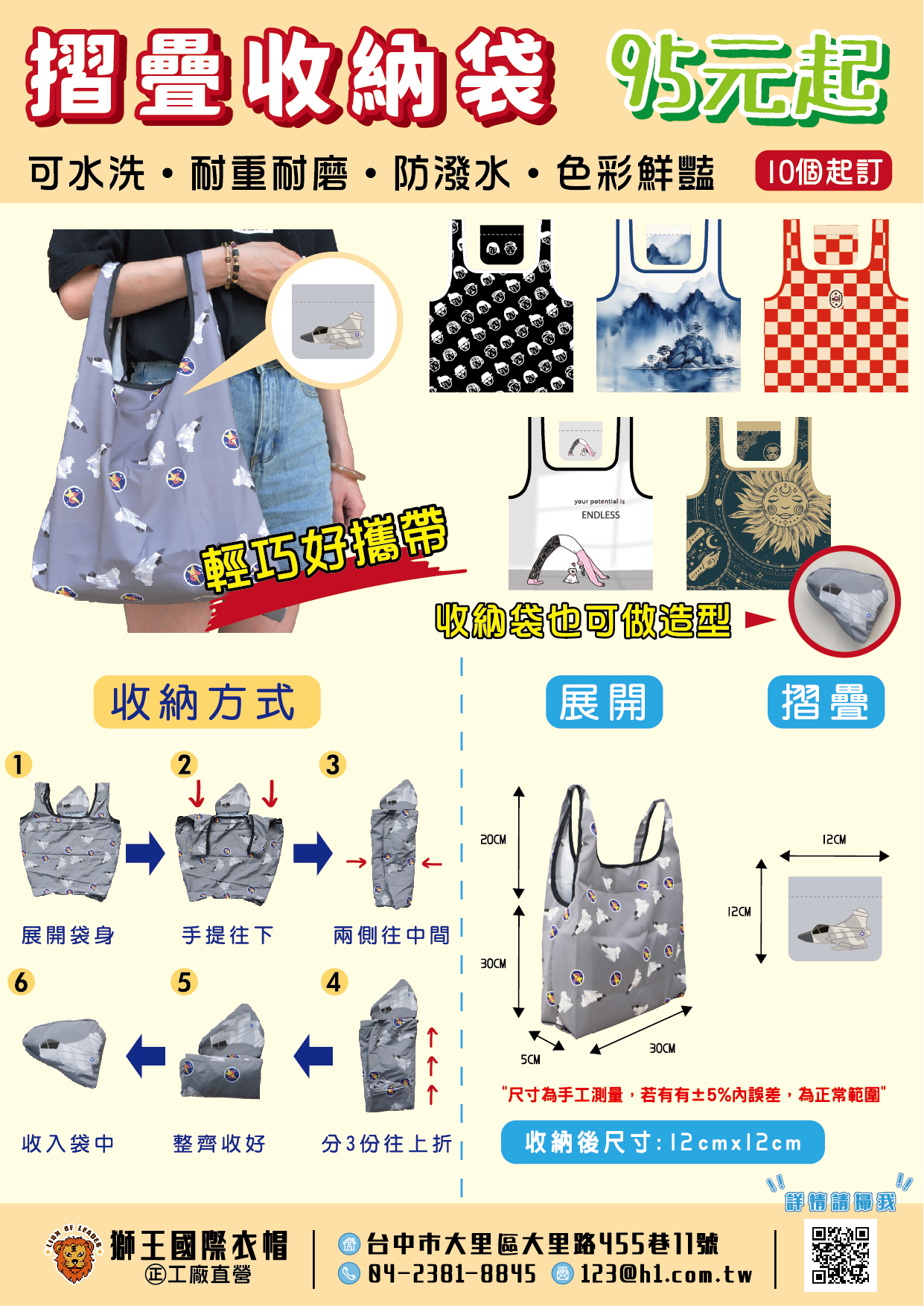 折疊後尺寸約:12X12CM(可客製)