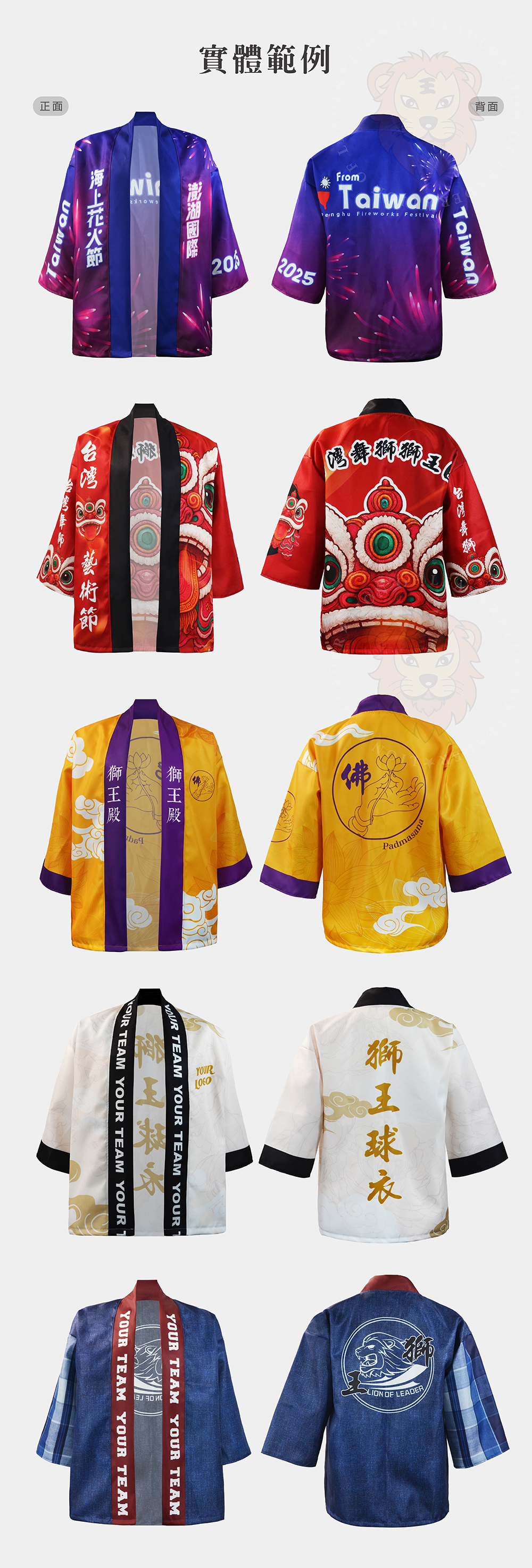 穿上印有神明名號與宮廟識別的羽織,團結氣勢、精神象徵!