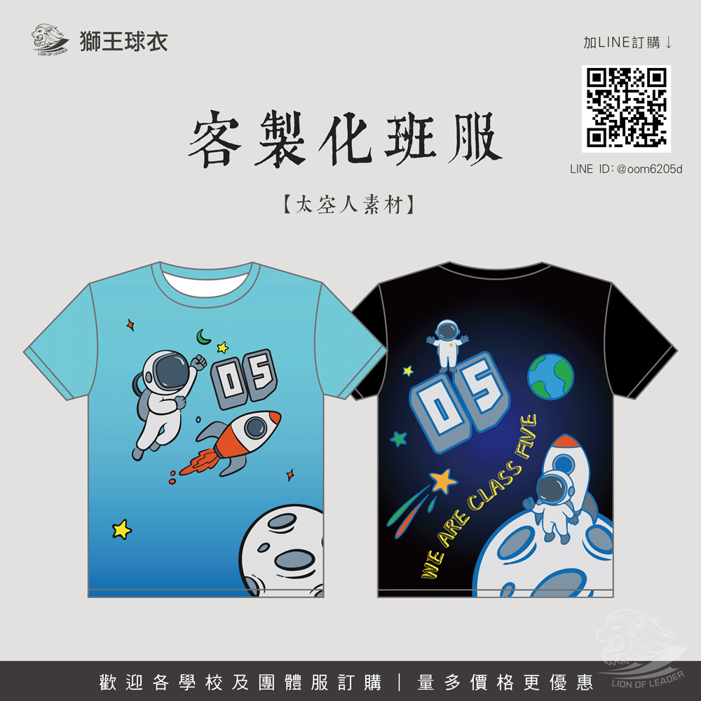 班服/系服/學校團體服 (圖庫素材) 全彩熱昇華可自行設計。 全彩可印,獨一無二。 一體成型,圖案永不脫落、不龜裂。 吸濕排汗,透氣舒適。 台灣製造,品質保證。 10件起訂|$320元起 。 款式【 圓領|V領|平袖|斜袖 】。 圖庫素材|可更換文字及顏色(※圖案不可修改) 使用熱昇華印刷技術,全彩印刷,且無版費!歡迎來電或 商品印刷細節 訂購流程 來電詢價 04-2381-8845 LINE@線上詢價【@oom6205d】 報價確認 收到詢價單後將盡速回覆您報價、交期、細節確認 收到訂金後安排製作 量產確認 確認尺寸、製作細節後開始量產製作 餘額貨到付款或自取