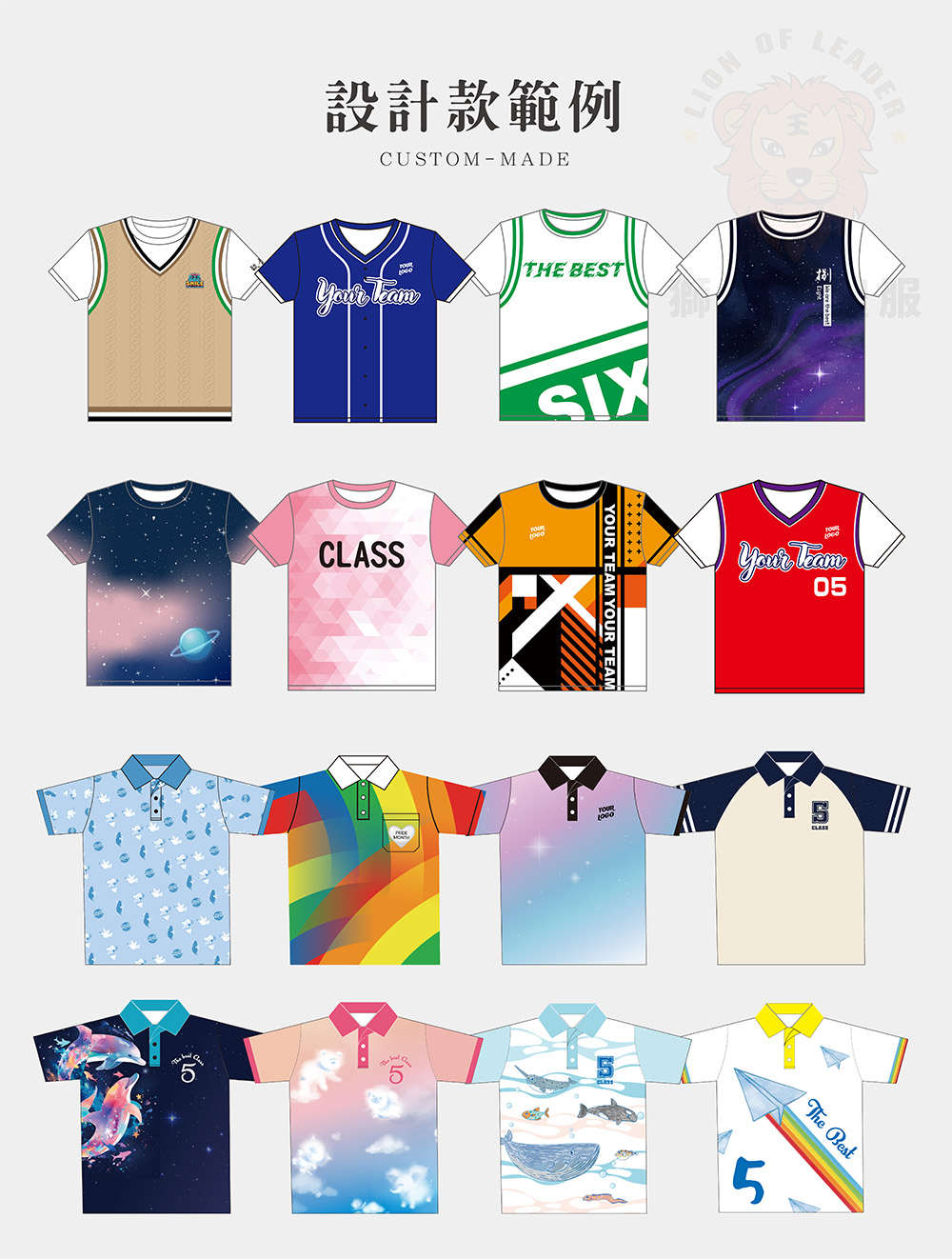 班服/系服/學校團體服 全彩熱昇華可自行設計。 全彩可印,獨一無二。 一體成型,圖案永不脫落、不龜裂。 吸濕排汗,透氣舒適。 台灣製造,品質保證。 10件起訂|$320元起 。 款式【 圓領|V領|平袖|斜袖 】。 使用熱昇華印刷技術,全彩印刷,且無版費!歡迎來電 訂購流程 來電詢價 04-2381-8845 LINE@線上詢價【@oom6205d】 報價確認 收到詢價單後將盡速回覆您報價、交期、細節確認 收到訂金後安排製作 量產確認 確認尺寸、製作細節後開始量產製作 餘額貨到付款或自取